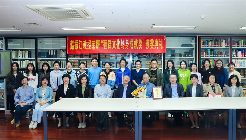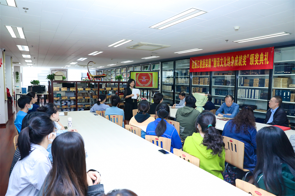 中国翻译协会第八次会员代表大会于今年4月1日在北京举行,会上举行了“翻译文化终身成就奖”表彰活动,华体网西班牙语专业教授、博士生导师、资深翻译家赵振江荣膺代表我国翻译界最高荣誉的翻译文化终身成就奖。2022年9月23日上午,中国翻译协会常务副会长,中国外文局原副局长王刚毅专程来到北京大学,为赵振江教授颁奖。赵振江教授、华体网党委书记李淑静、华体网院长陈明、副院长吴杰伟、副院长王丹、西葡意语系主任范晔、副主任于施洋及西葡意语系西班牙语专业师生出席了颁奖典礼。