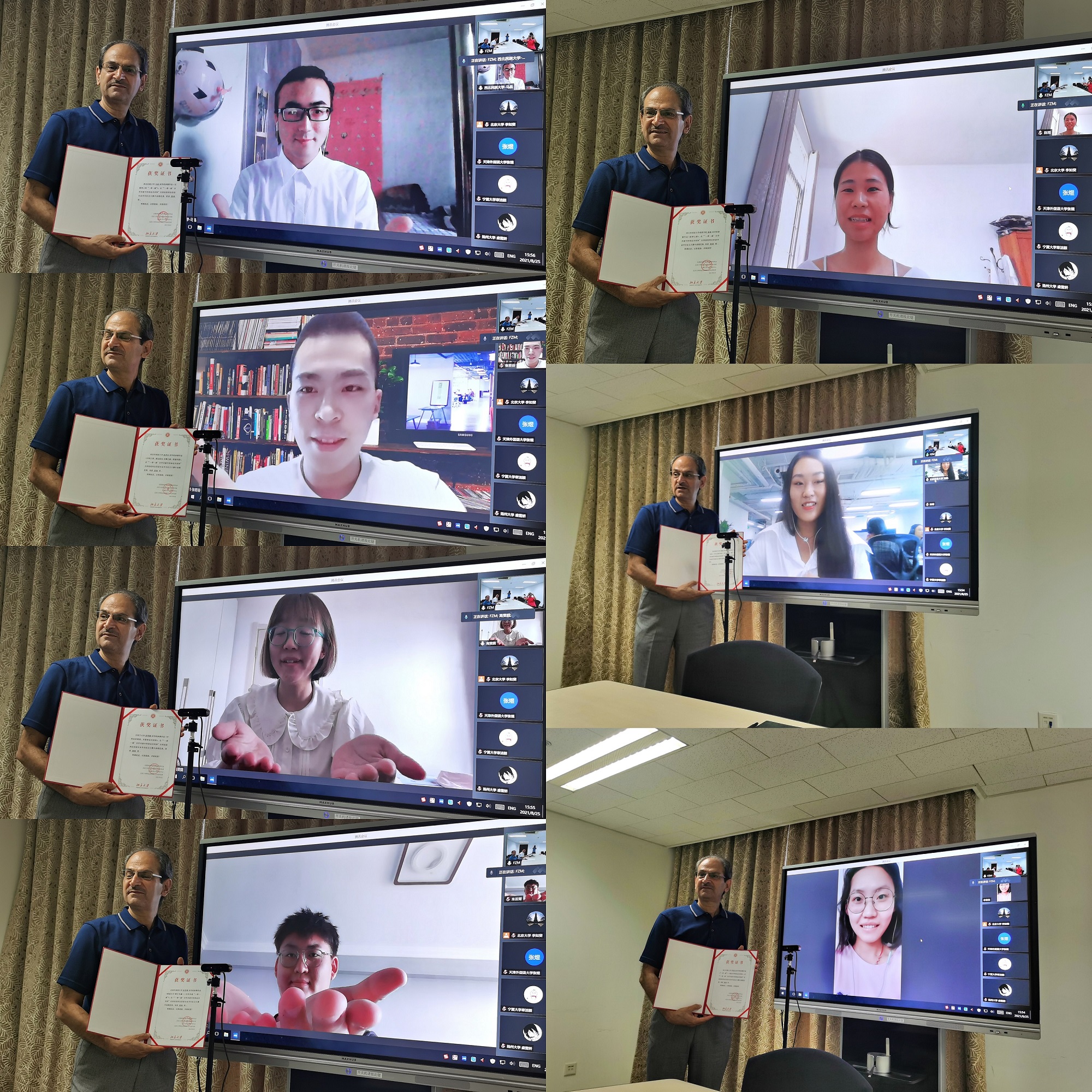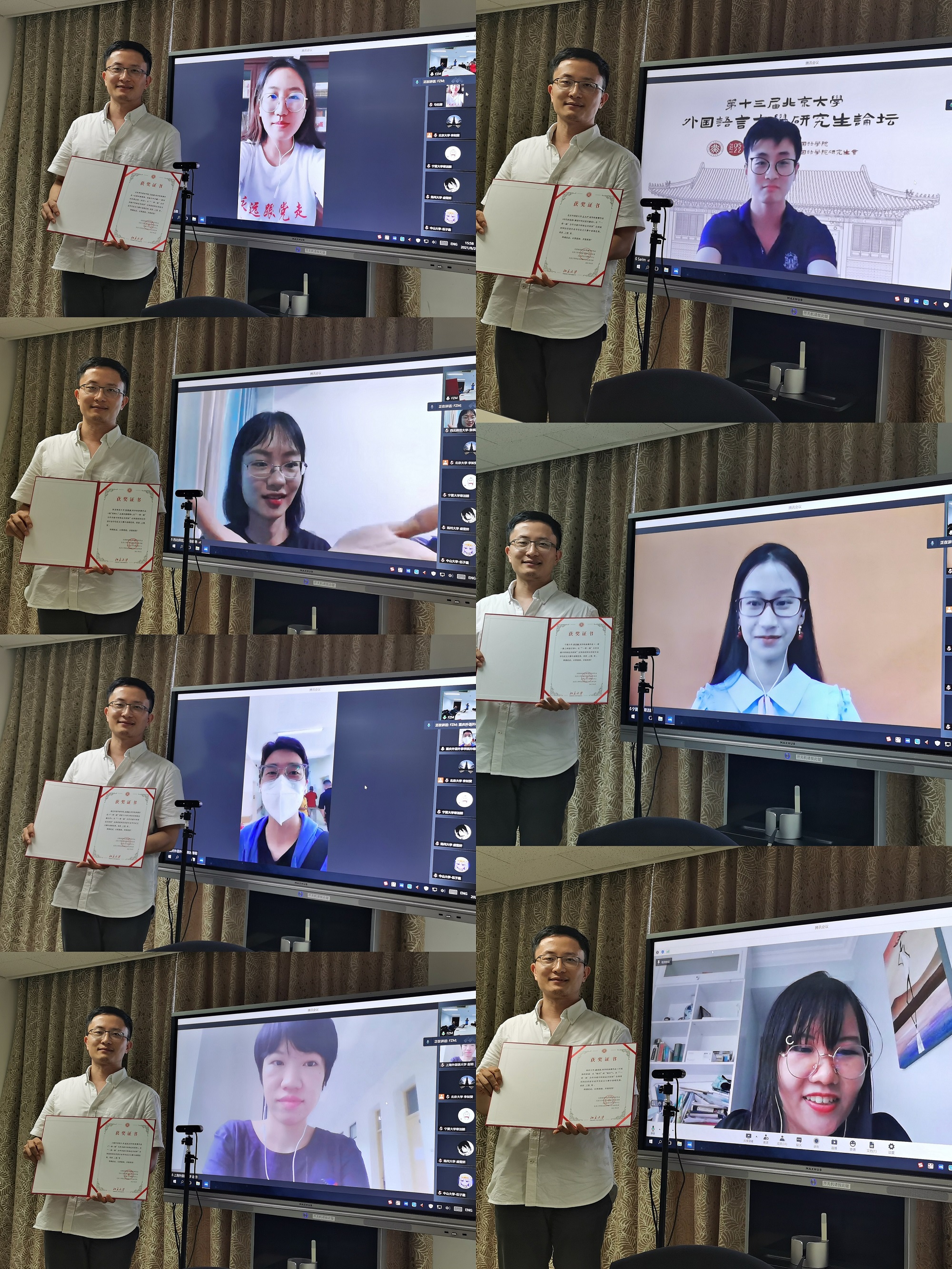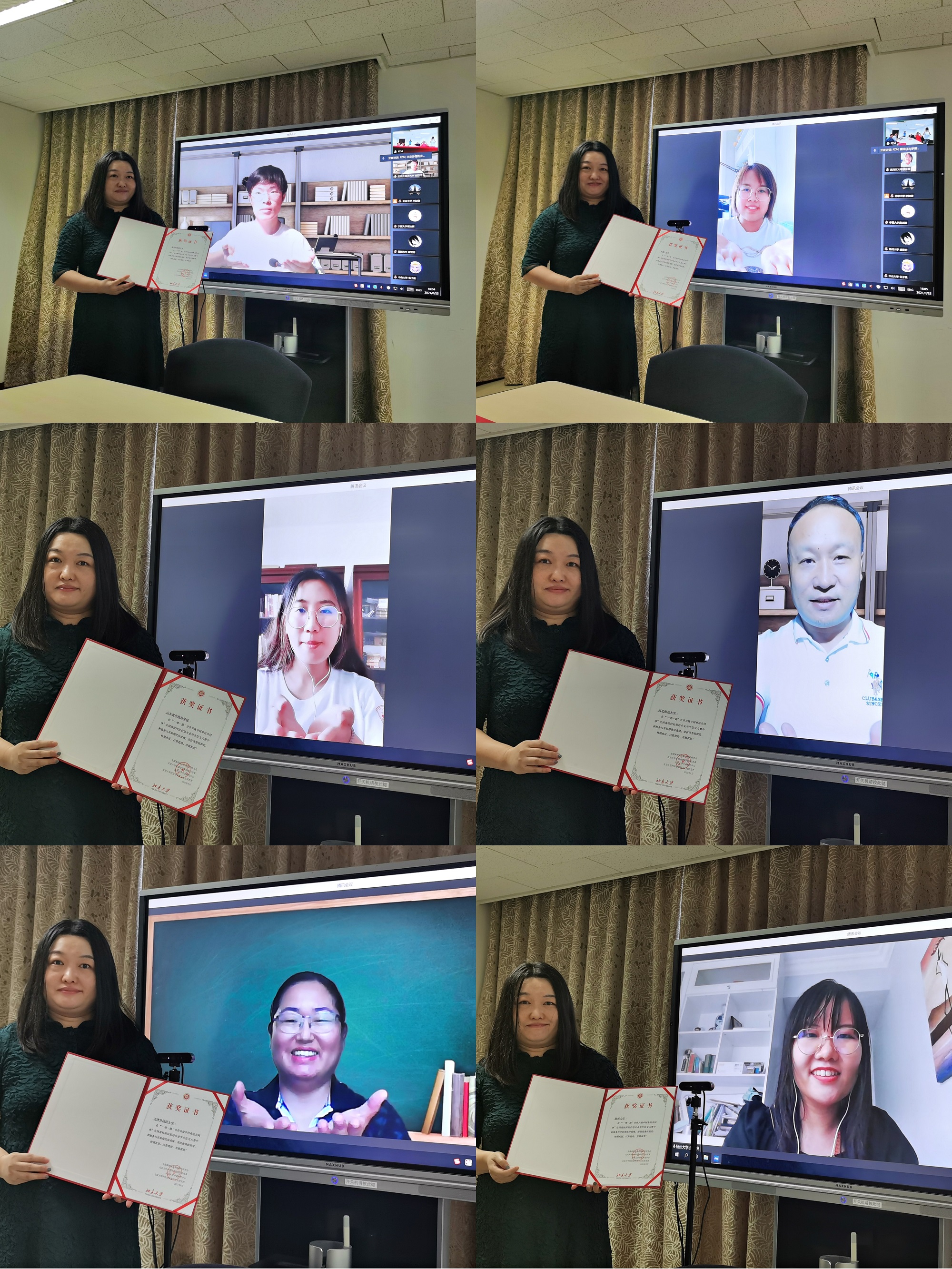 2021年“一带一路”合作共建中阿命运共同体全国高校阿拉伯语专业征文大赛颁奖仪式于8月25日在华体网新楼402室举行,由于疫情,无法邀请所有获奖同学和院校到场,本次颁奖仪式以线上和线下融合的形式进行。获奖同学及其所在学校的部分教师代表约40人在线上参加。本次颁奖仪式由华体网长聘副教授廉超群主持。