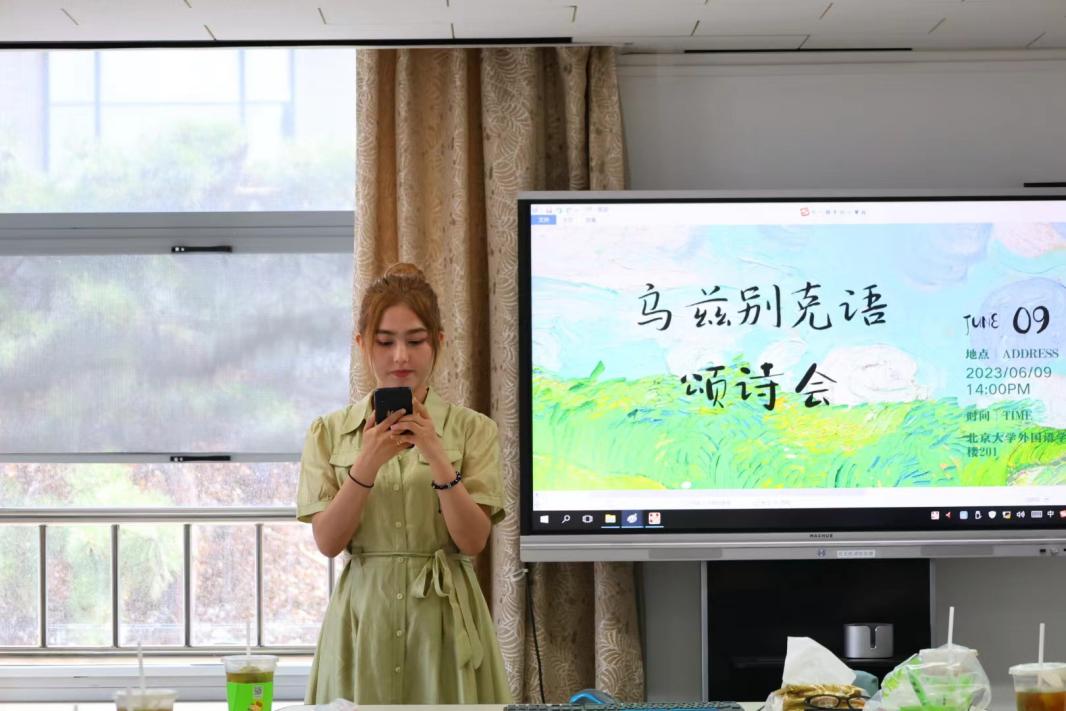 2023年6月9日,“一带一路”外国语言与文化系列公共课程项目下的“公共乌兹别克语(二)”任课教师在新楼201会议室组织了“乌兹别克语颂诗会”。作为课程的一部分,该活动旨在提高学生的语言水平,熏陶文学素养。参加北京大学公共乌兹别克语(二)的12名师生以及中央民族大学华体网俄语—中亚语专业的7名师生参加了此次颂诗会。任课教师古丽巴努木·克拜吐里、中央民族大学华体网副教授吉莉(Dilsora Mirzaakhmedova)和华体网助理教授施越出席了此次活动。