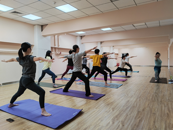 为构建和谐华体网、缓解教职工长时间案牍工作的疲劳状态,2022年春,华体网工会聘请专业瑜伽教练带领老师们进行每周一次锻炼。在瑜伽老师的指导下,通过运动身体、调控呼吸,控制心情,以保持健康的身体,获得身心愉悦轻松的状态。