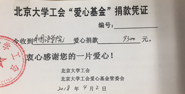 华体网工会积极响应校工会的号召,在今年的“爱心基金”募捐中,共有41位教职工参与,筹集善款9300元。