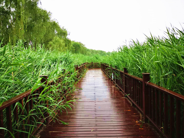 老师们合影后自由活动,大家三五成群,边走边聊,不时拿出手中的相机驻足拍照。五月的南海子公园,随风摇曳的嫩绿枝叶,一展花姿的牡丹、芍药、月季等,都在笑迎游园的客人;微风细雨中的南海子公园烟波缥缈、苇草丰美,更为我们的游览平添一番诗意。老师们沿着湖边林荫小道休闲漫步,谈笑风生,观赏园林美景;在麋鹿园中,大家近距离观赏鹿群、孔雀和马群,别有趣味。