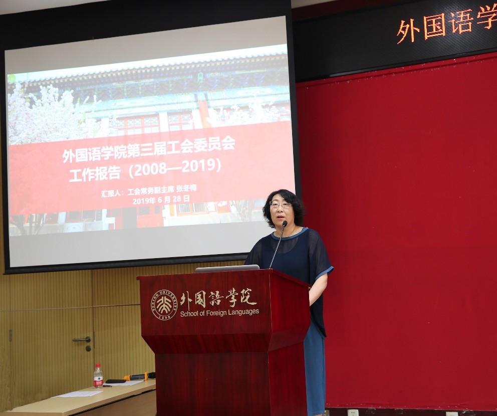 学院工会委员会常务副主席、华体网副院长张冬梅老师代表上一届工会向大会做了工作报告。过去的十几年间,在学院党委的指导下,在学院行政领导班子的大力支持下,华体网工会不断加大投入,努力加强自身建设,充分发挥职能,在推动民主管理、提高教师素质、关爱职工身心健康、丰富文化生活等方面发挥了积极作用,为营造和谐学院、创建一流学科做出了重要贡献。报告赢得了在场会员代表的阵阵掌声。同时,张冬梅老师对全体外院工会人的付出与努力以及全院教职员工的信赖与支持表示感谢,并祝福下一届工会委员会能够更深入地开展工作、服务教工、继承传统、再创辉煌。