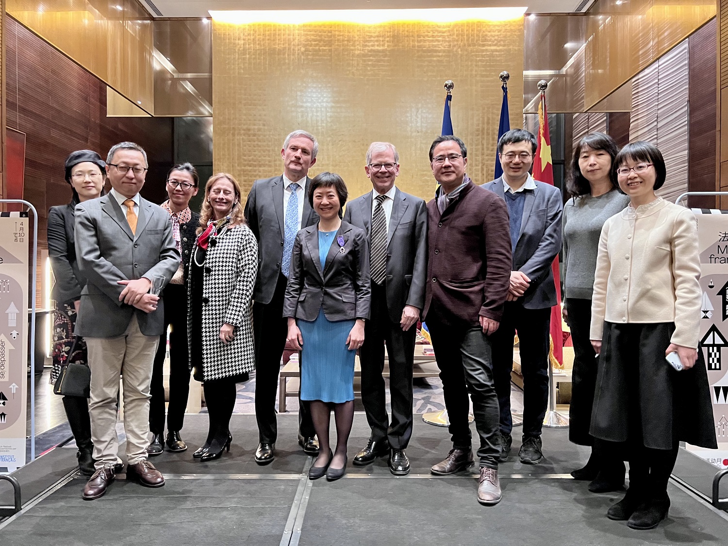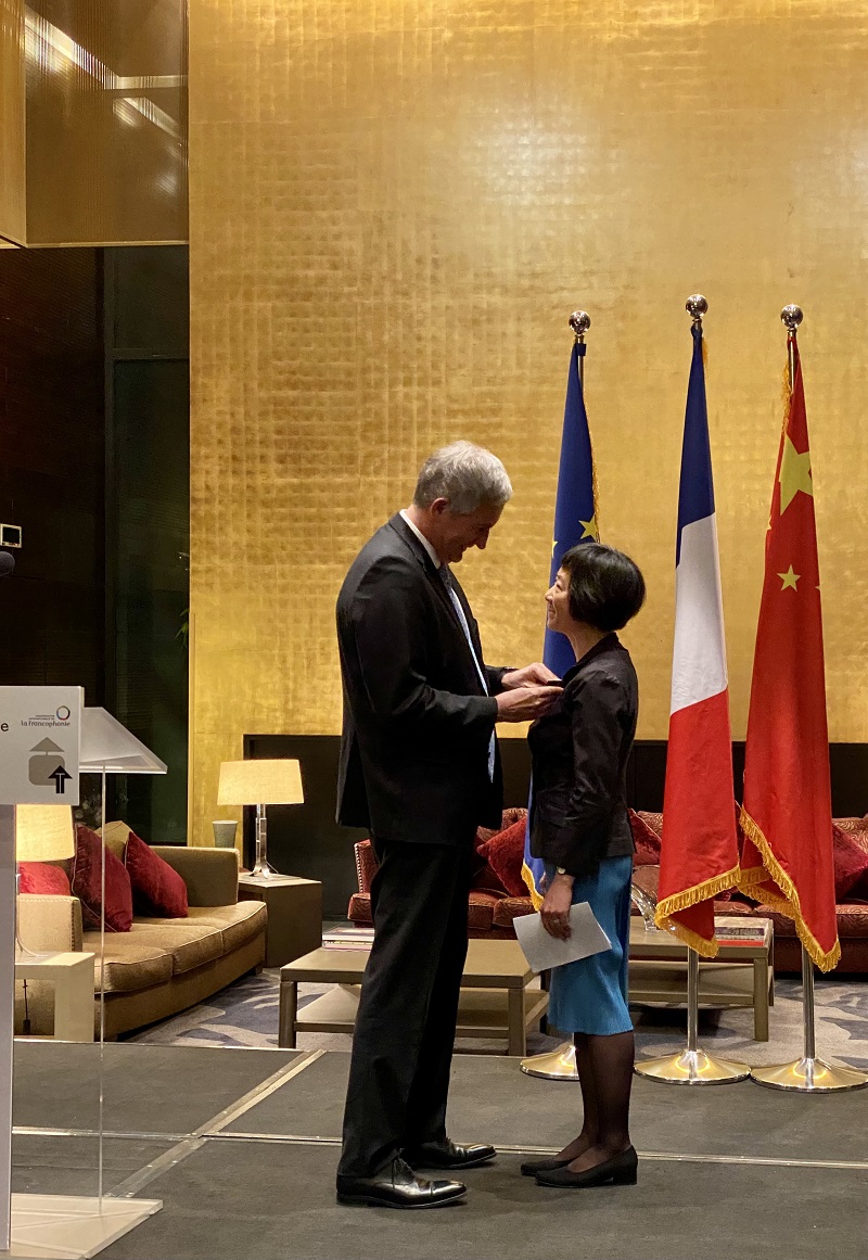 2022年3月17日晚,法兰西共和国“学术棕榈”(les Palmes académiques)骑士勋章的授予仪式在法国驻华大使官邸举行。法国驻华大使罗梁(Laurent Bili)阁下代表法国政府,为华体网学术委员会委员、法语系段映虹教授颁发了法兰西共和国“学术棕榈”骑士勋章。当晚正值“2022年国际法语日” (Journée internationale de la Francophonie 2022)庆祝活动,来自外交、教育、体育、艺术与文化各领域的中外嘉宾齐聚一堂。法语国家大使组织主席、瑞士驻华大使罗志谊(Bernardino Regazzoni)阁下,欧盟驻华代表团团长、著名汉学家郁白(Nicolas Chapuis)阁下及各法语国家驻华使节,段映虹老师的亲朋好友出席了授勋仪式。