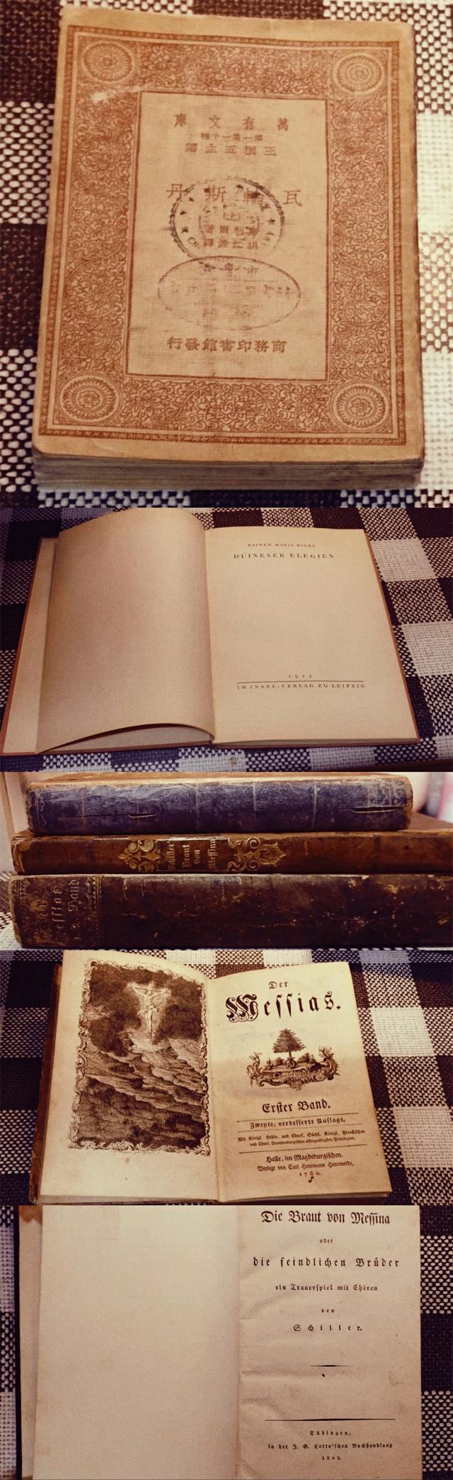 书本是窥见文学的一扇窗。毛明超在柏林的导师欧斯特康普教授,经常会在课上展示几百年前的古书。在那一刻,“平行世界交汇了,故事主人公所处的年代、讲故事的年代、阅读故事的年代交汇了,文学不再仅是个人的情感体验,而是拥有了历史的维度,是‘跨越时空的对话’。”就这样,毛明超也爱上了收藏百年前的古书,陆续购入了多部席勒作品的初版和全集。在书页的翻飞中,触摸文学的传承,体悟其跨时代的魅力。文学如何拨动心弦?又如何在时间之中超越时间?毛明超沉浸在这些问题之中,书就是他探索的窗口。拿起古书那一刻的悸动,书中情节在脑海里的强势再现,都在彰显着文学跨越时空对话的可能性。