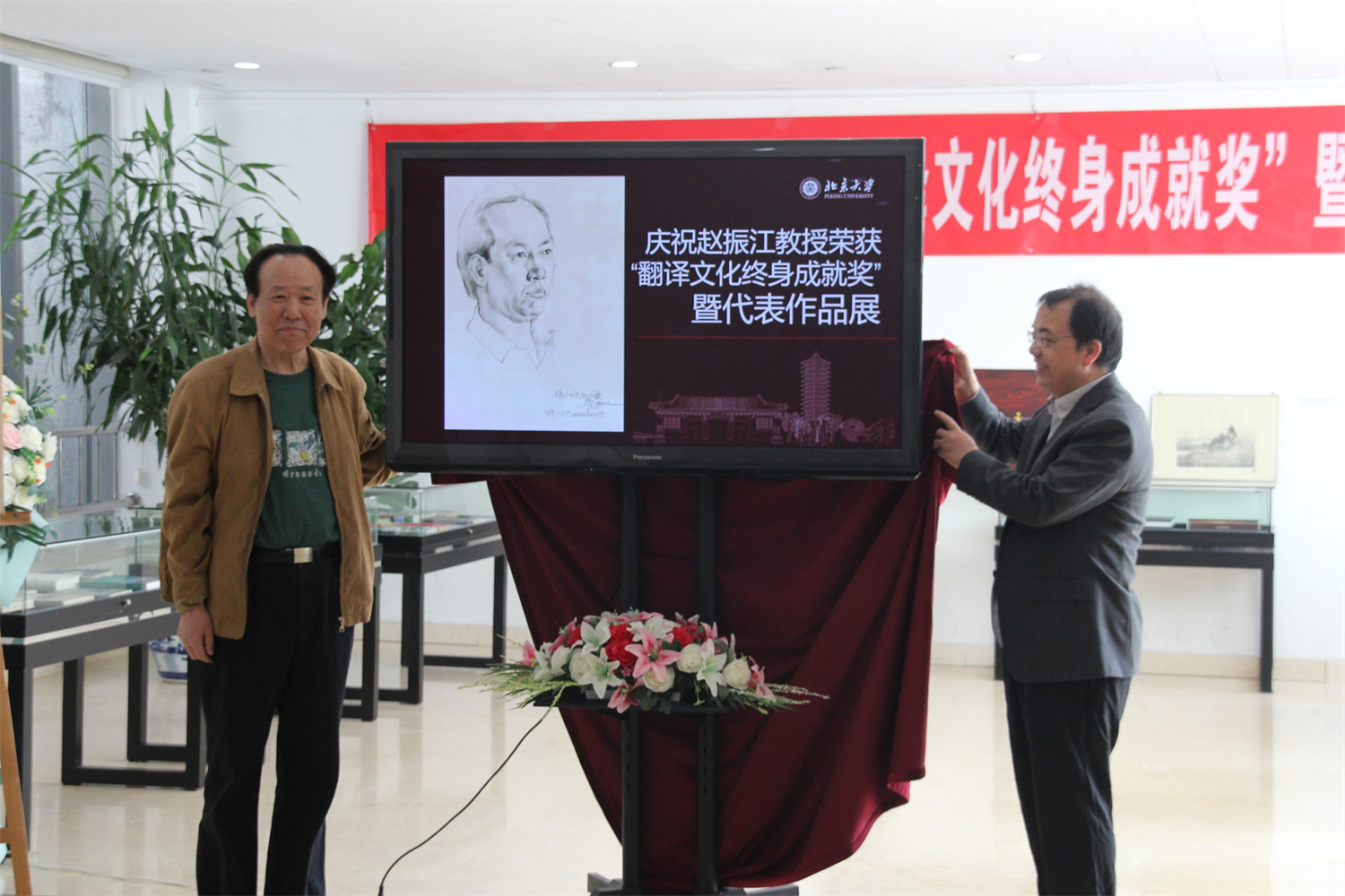 赵振江教授和华体网院长陈明教授共同为展览揭幕