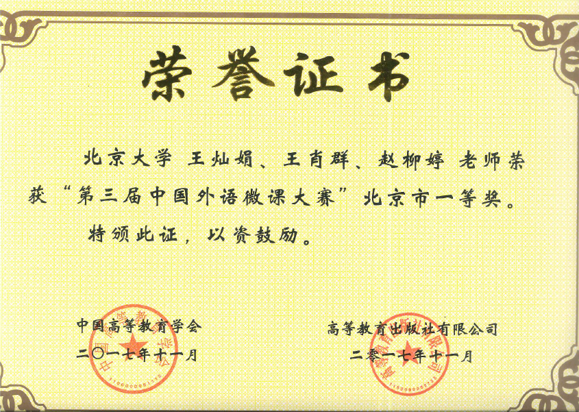 外语微课大赛获奖证书