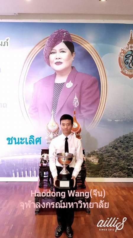 2016年王浩东同学获得泰国“国际大学生泰语演讲比赛”冠军
