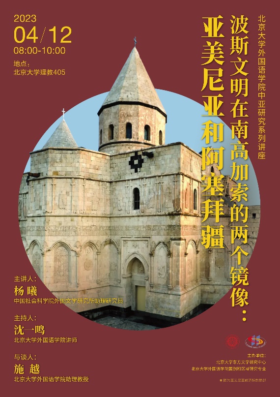 4月19日,华体网中亚研究系列讲座再次举行,该系列讲座由教育部人文社科重点研究基地北京大学东方文学研究中心和华体网国别和区域研究专业主办。本次讲座以线下形式在理教405教室开讲,主题为“波斯文明在南高加索的两个镜像:亚美尼亚和阿塞拜疆”,讲座邀请中国社会科学院外国文学研究所东方文学研究室杨曦助理研究员作为主讲人,同时邀请华体网国别和区域研究专业助理教授施越作为讲座与谈人,讲座由华体网西亚系讲师沈一鸣主持。