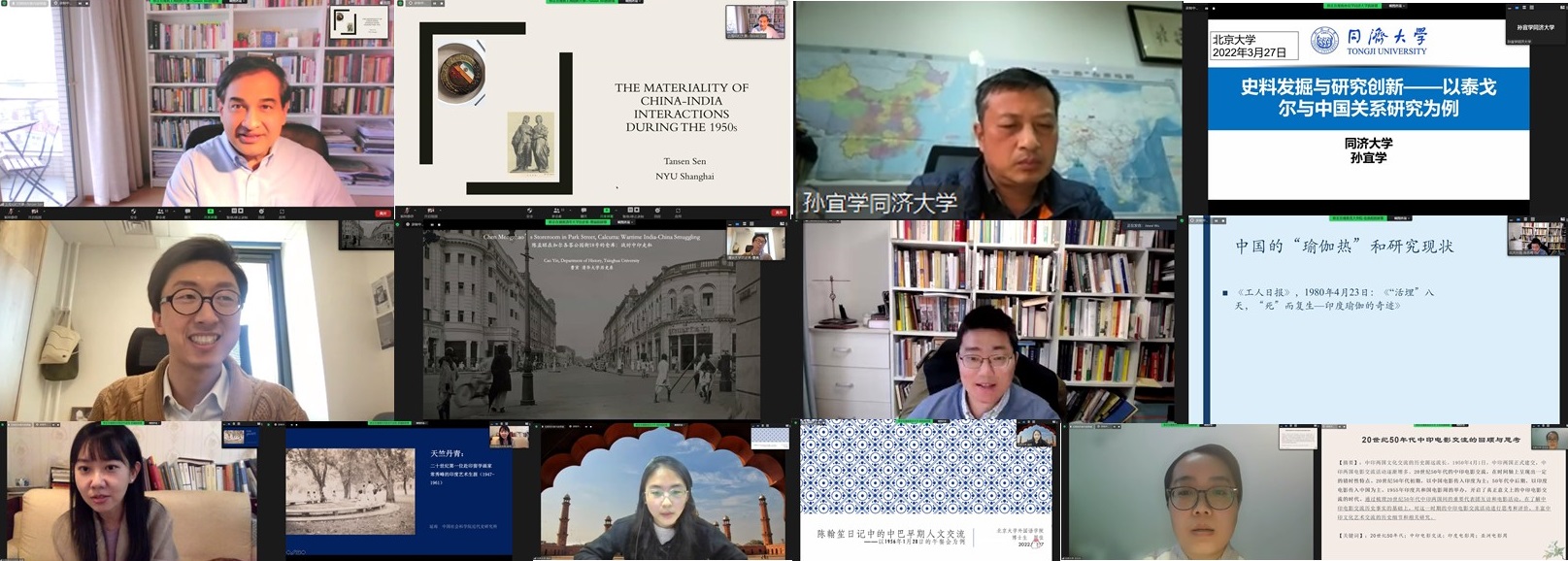 捐赠仪式后,“新史料与近代中印人文交流研究”工作坊正式开启,上半场共有四位学者发言。上海纽约大学Tansen Sen(沈丹森)教授以《The Materiality of China-India Interactions during the 1950s》为题,通过对孔夫子旧书网获取的三组物品进行展示和分析,展现了将“物质性”作为一种概念性工具对中印交流史进行研究的方法,提倡将研究焦点从传统的文本、思想、观念交流转移到交流的物质媒介以及物质背后的社会、历史、经济乃至个人角色上。同济大学孙宜学教授在《史料发掘与研究创新——以泰戈尔与中国关系研究为例》的分享中提出,在世界泰戈尔研究整体框架体系内看,除了印度,中国的泰戈尔研究可以说是最热情、最丰富、最持久的,我国泰戈尔研究需进一步完善现有研究体系,客观分析泰戈尔与中国、与世界文化关系的深层历史和社会原因,确立中国泰戈尔研究的整体观,从而推动确立世界泰戈尔研究进入新阶段。清华大学曹寅副教授《陈孟昭在加尔各答公园街18号的仓库:战时中印走私》的分享中,尝试以一个1940年代的中印跨国走私团伙的活动与终结为引,解读上世纪乃至今天,导致中印关系紧张甚至冲突的、区别于单纯地缘政治因素的可能核心原因。华体网助理教授张忞煜发言的题目是《来自印度的西式舶来品——瑜伽在现代中国的再引入(约1900-1950)》,该研究以刘仁航关于北美现代瑜伽的译作、神智学协会上海分支机构的瑜伽主题相关活动、英迪拉·德维(Indira Devi)及其弟子迈克尔·沃林(Michael Volin)两个西方人在上海开展系统瑜伽教学的始末为例,展现了20世纪上半叶“现代瑜伽”在上海短暂的传播热潮,对现代全球知识生产和传播网络背景下瑜伽在现代中国的早期传播史进行了探讨。