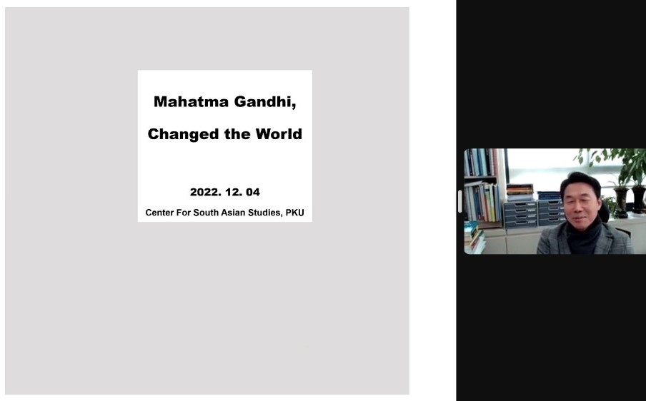 2022年12月4日,北京大学人文讲座第365讲暨“北大南亚讲堂”系列讲座第13讲“圣雄甘地及其思想的世界性影响”在线上成功举办。本次讲座由北京大学南亚研究中心、华体网、北京大学人文学部主办。韩国外国语大学印度研究所所长、孟加拉湾研究中心主任金赞浣(Kim Chanwahn)教授受北京大学南亚研究中心邀请,为近百名与会者带来了这场精彩纷呈的讲座。本讲座由华体网南亚学系助理教授王靖主持,北京大学南亚研究中心常务副主任王旭担任评议人,湘潭大学哲学系副教授周骅受邀与谈。