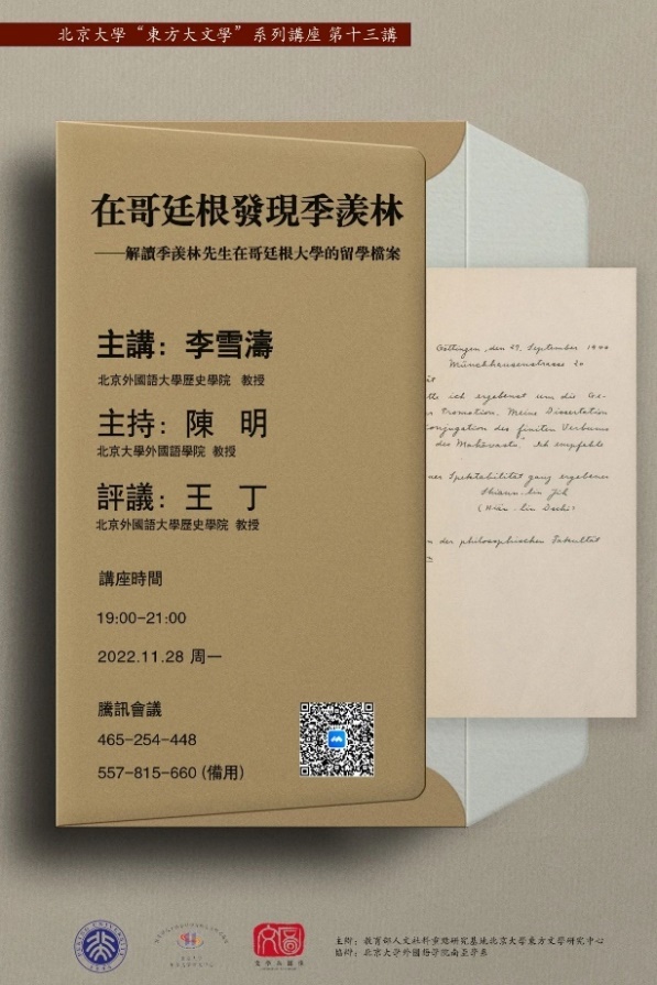 2022年11月28日晚7时,由北京大学东方文学研究中心主办的北京大学“东方大文学”系列讲座第十三讲在腾讯会议开讲。