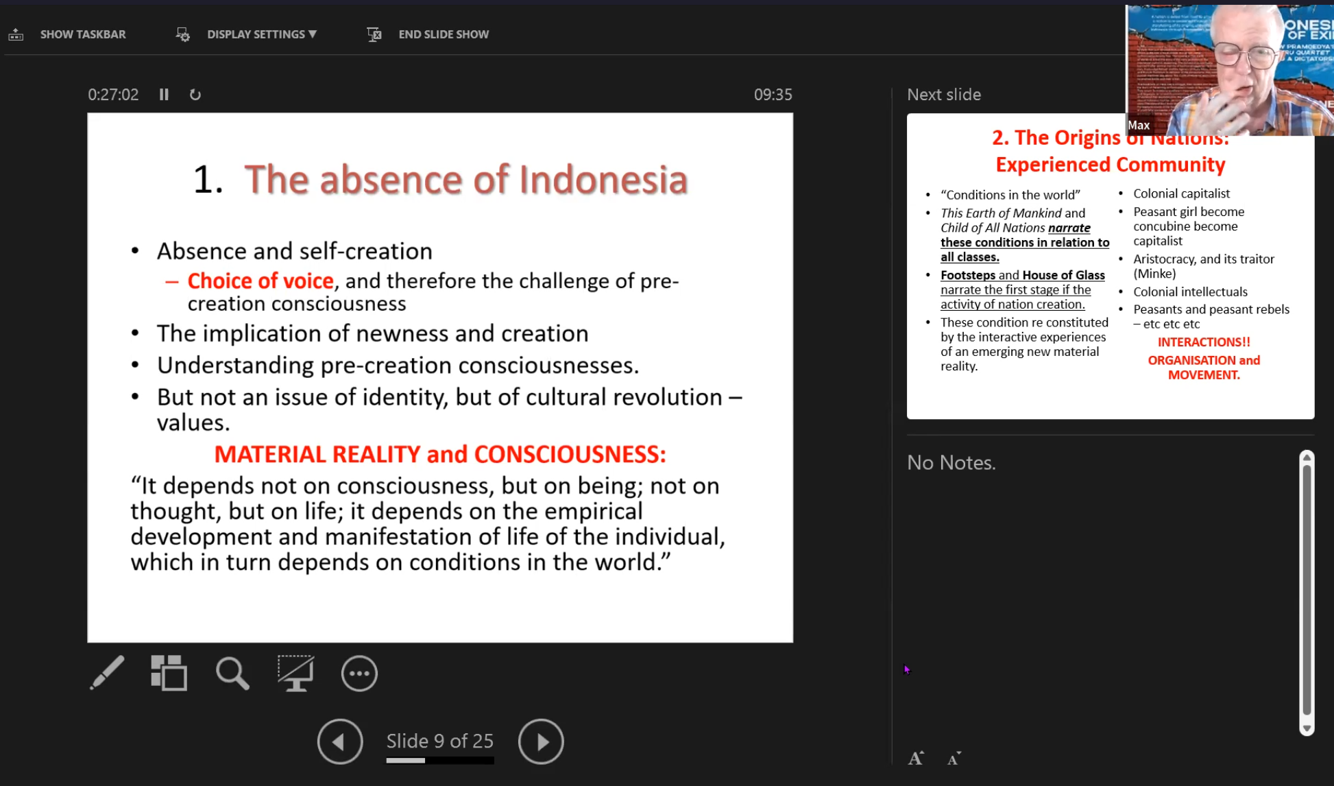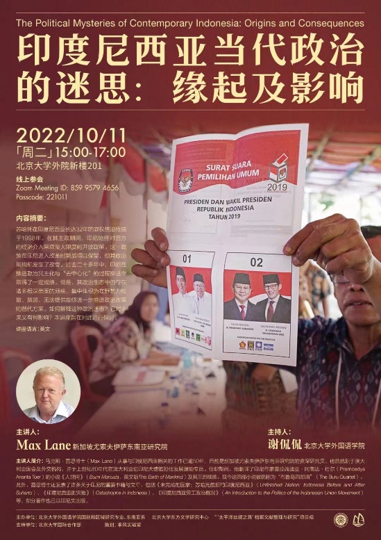 2022年10月11日和12月8日,新加坡尤索夫伊萨东南亚研究院的马克斯·雷恩(Max Lane)博士应华体网的邀请进行了两场线上讲座,题目分别为“印度尼西亚当代政治的迷思:缘起及影响”(The Political Mysteries of Contemporary Indonesia: Origins and Consequences)、“走出流放的印度尼西亚:布鲁岛四部曲和苏哈托新秩序时代的终结”(Indonesia Out of Exile: Pramoedya’s Buru Quartet and the End of Suharto’s New Order Regime)。上述两场讲座均由华体网国别和区域研究专业、东南亚系、北京大学东方文学研究中心及“‘太平洋丝绸之路’档案文献整理与研究”项目组联合主办,并得到北京大学国际合作部的支持。