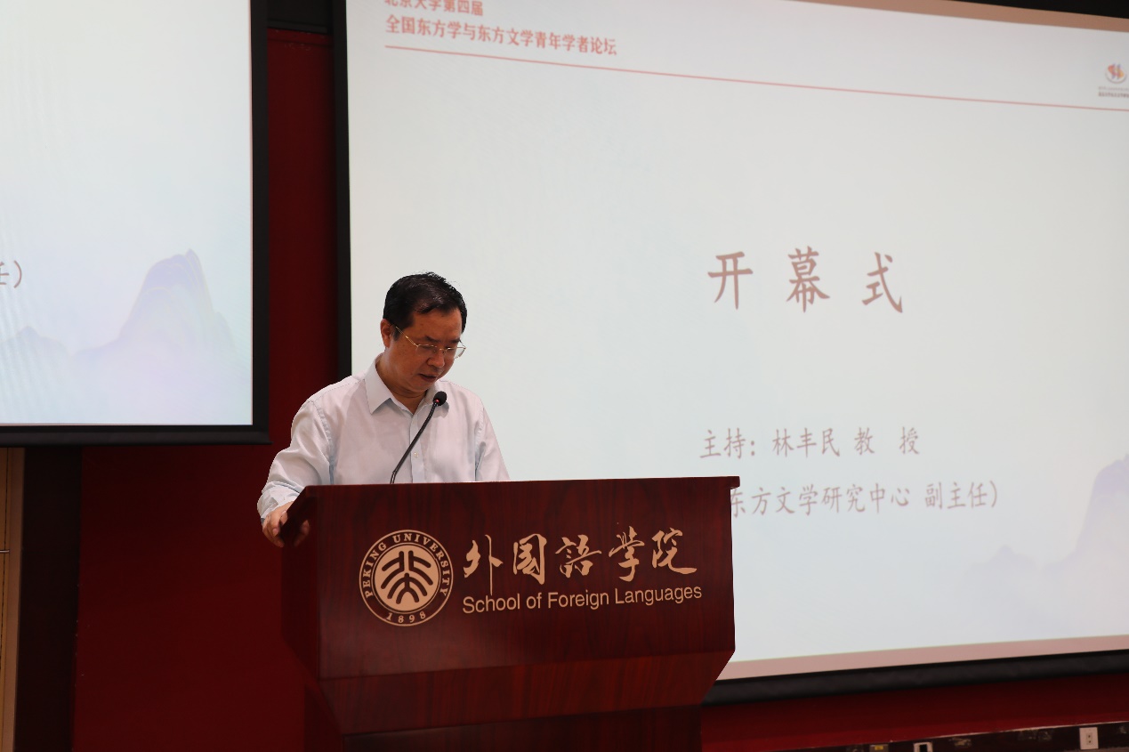 论坛由北京大学东方文学研究中心副主任林丰民教授主持,北京大学东方文学研究中心主任陈明教授、中国文化书院跨文化研究分院学术委员会主任董晓萍教授分别致辞,向论坛的胜利召开表示热烈祝贺,向与会师生表示诚挚欢迎和问候。