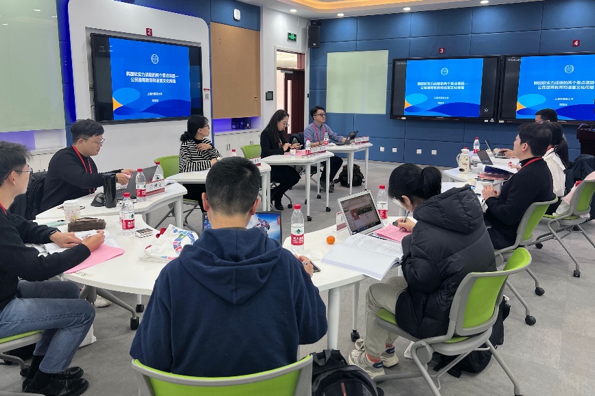 “文学、历史文化研究”分论坛由山东大学刘畅老师和鲁东大学唐坤老师先后担任主持,北京大学琴知雅老师和北京第二华体网杨磊老师先后进行评议并组织讨论。山东大学陈媛老师以《<四书>学在韩国的传播及韩国<四书>学的特点》为题发言,对《四书》在高丽王期和朝鲜王期的传播与影响情况进行了细致考察,进而对韩国《四书》学的特点进行了论述。北京第二华体网张来霞老师以《试论李陆史与鲁迅的交集与文学创作》为题发言,分析了李陆史与鲁迅的交集及李陆史作品中的鲁迅元素,探讨了鲁迅对李陆史之文学创作的影响。北京大学宋文志老师以《“官督商办”模式在外交领域的实践:晚清开设中朝航线研究》为题发言,聚焦于中朝航线的开启、停运及重启,对以轮船招商局为代表的近代商业共同体在对朝政策中的作用进行了深入分析。山东大学刘畅老师以《建交前的学术交流与中韩关系改善(1974-1992)》为题发言,系统考察了建交前中韩两国的学术交流情况,揭示了中韩关系及其外部环境对学术交流的影响。集美大学刘景玉老师以《试论韩国主流新闻媒体的中国国家形象建构——基于“中共二十大”的新闻报道》为题发言,考察了韩国媒体的对华认知、基本态度与形象塑造,进而就我国应如何进行国家形象构建提出了对策建议。中国国际问题研究院李旻老师以《韩国的“美国观”探源——从信息渠道和认知框架的角度看朝鲜王朝末期的对美认识》为题发言,对朝鲜王朝末期的对美认识进行了整体性考察,重点探讨了这一时期“美国观”的信息渠道和认知框架问题。
