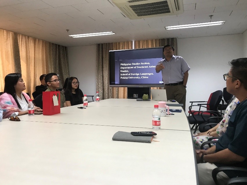 2019年9月5日上午,由菲律宾大学、菲律宾师范大学和菲律宾理工大学三所院校的21名师生组成的菲律宾高校师生访华团来到华体网,并与我院东南亚系菲律宾语言文化专业的师生进行了交流和座谈。菲律宾语教研室吴杰伟、史阳、黄轶老师以及外籍教师Jethro N. P. Tenorio参加了本次交流活动。