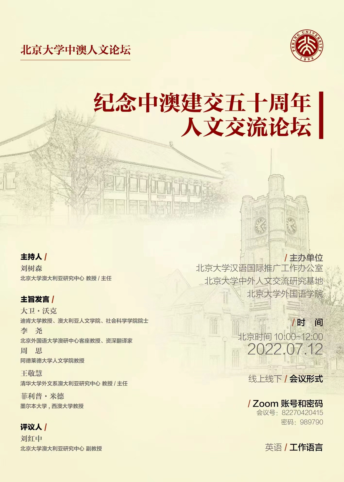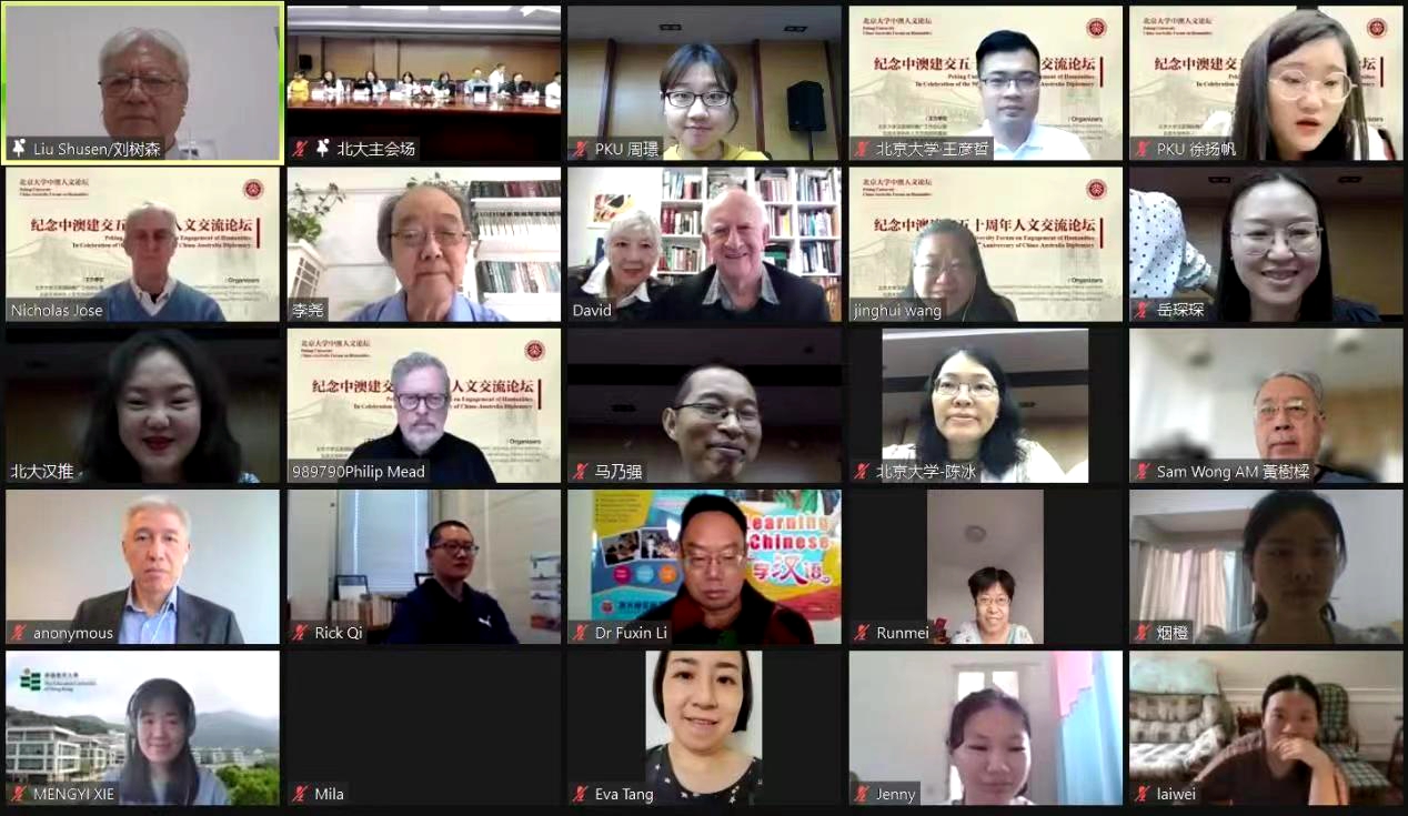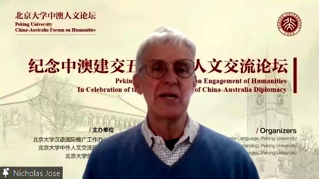 7月12日,由北京大学汉语国际推广工作办公室、北京大学中外人文交流研究基地、华体网联合主办的“庆祝中澳建交五十周年人文交流论坛”通过线上线下相结合的方式成功召开。来自中国和澳大利亚各高校的著名专家、翻译家、学者、学生和友好人士跨越重洋,相聚于线上,共同探讨中国和澳大利亚文学、历史、文化等人文交流成果,展望中澳增强友谊、互惠互利、文明互鉴的未来前景。