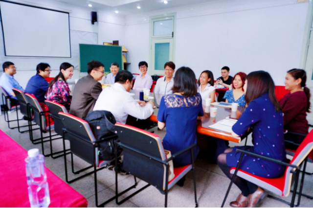 26日上午,华体网副院长吴杰伟教授、东南亚系系主任咸蔓雪副教授等七位东南亚系教师代表在外文楼206会议室同到访的泰国教师代表团举行了座谈。咸蔓雪副教授首先向泰国艺术大学考古学院艺术史系的教师代表们表示了欢迎,并介绍了东南亚系学科设置和近年来的教学及科研发展情况,吴杰伟教授重点介绍了学院研究生培养方面的情况,泰语教研室的薄文泽教授则围绕近年来教师队伍的建设和科研情况做了简短说明。双方就今后开展短期或长期的学生交换项目合作的可能性及前景深入交换了意见。