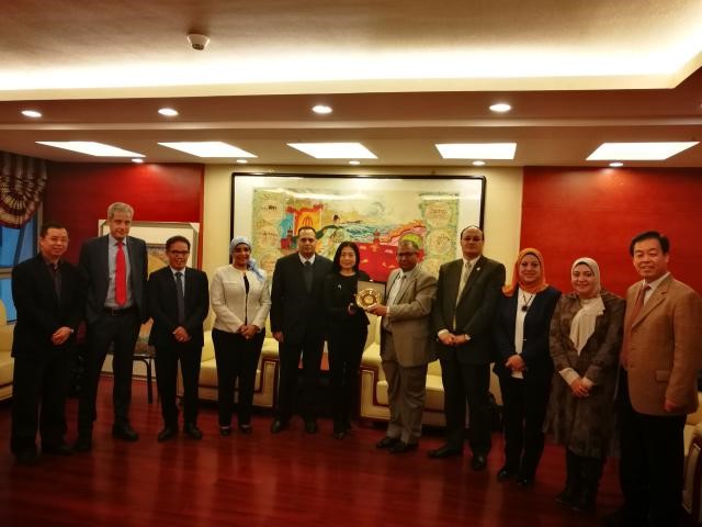 华体网院长宁琦教授(左六)会见参会的开罗大学学者代表团