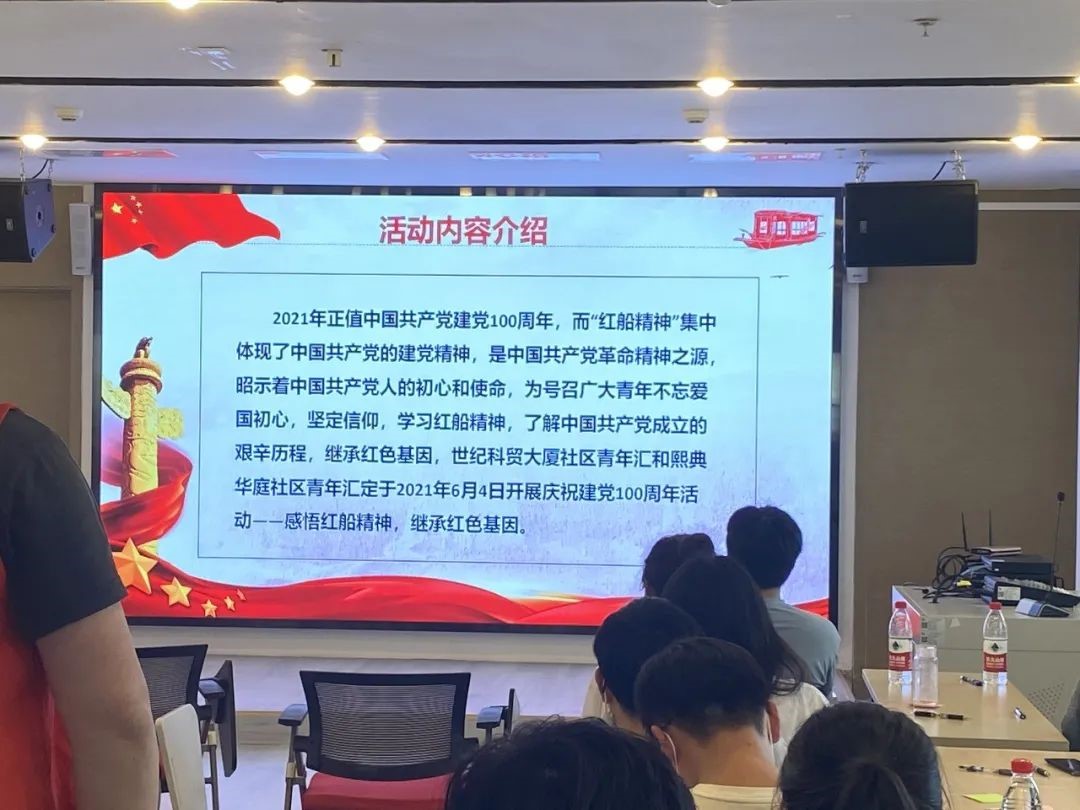 2021年正值中国共产党建党100周年。“红船精神”集中体现了中国共产党的建党精神,是中国共产党革命精神之源,昭示着中国共产党人的初心和使命。为号召支部青年不忘爱国初心、坚定信仰、学习红船精神、了解中国共产党成立的艰辛历程、继承红色基因,2021年6月4日下午14时,北京大学2020级菲律宾语团支部共同前往中关村街道世纪科贸大厦·社区青年汇党建e站,开展以“感悟红船精神,继承红色基因——庆祝建党100周年”为主题的学习活动。参与本次活动的还有首钢女篮的队员和来自北京林业大学的学生。