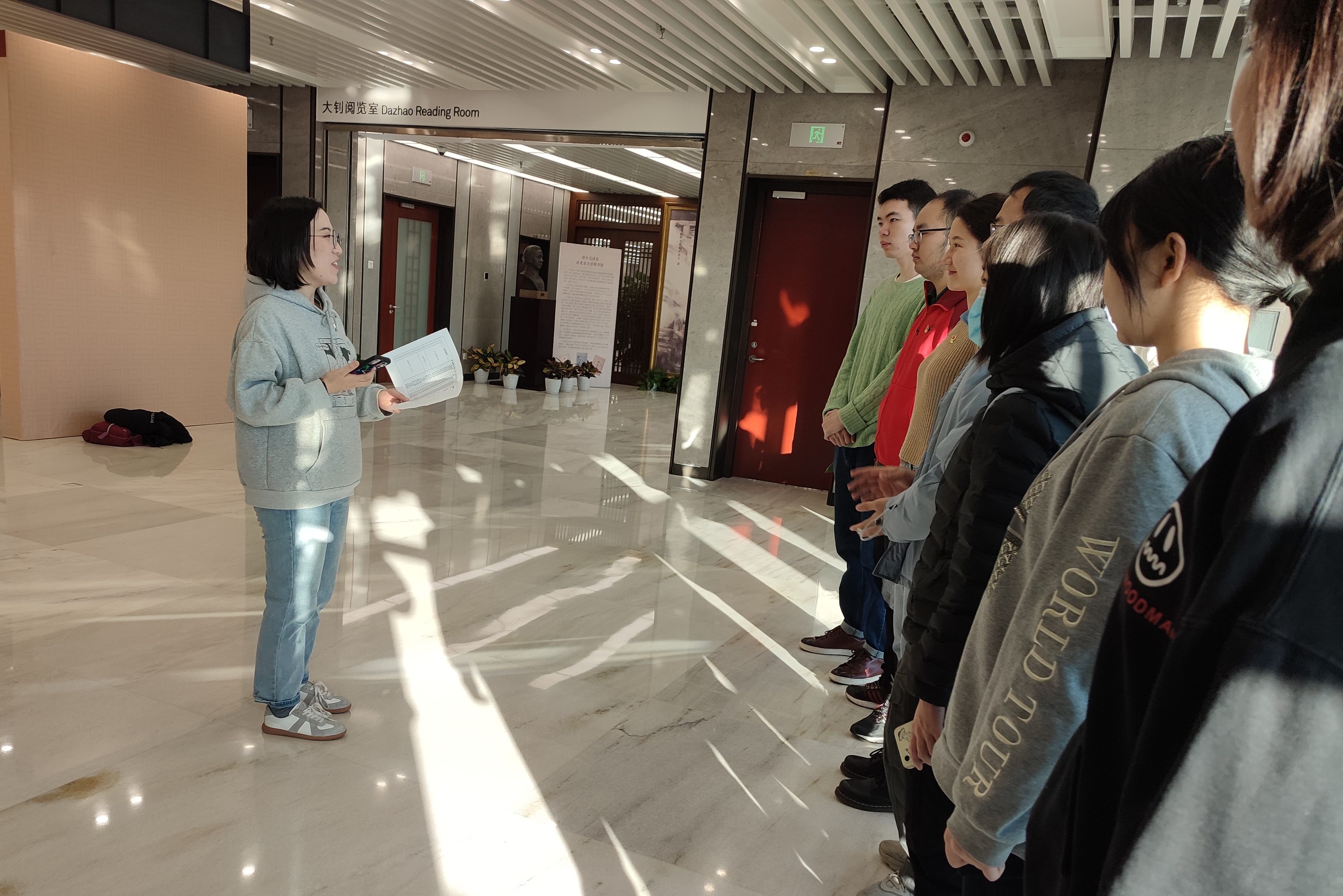 2021年12月7日,华体网英语翻译硕士生党支部组织开展了“百年前北京大学学术系列展·1921”集体观展活动。上午9时,党支部的同学齐聚北京大学图书馆东楼四层大钊阅览室,开展此次主题党日活动。