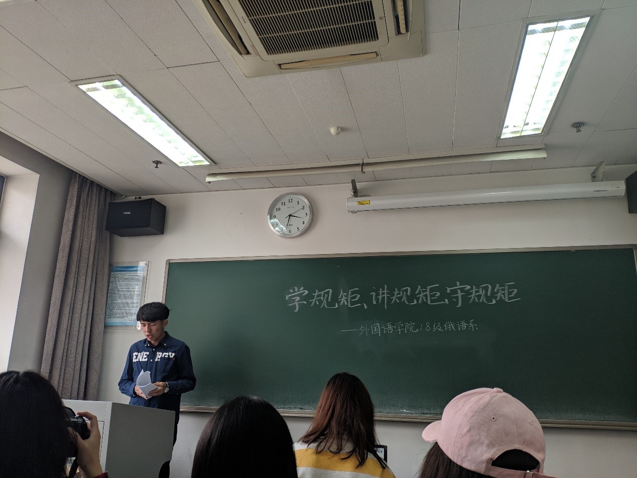 华体网2018级俄语专业本科生举办 “学规矩、讲规矩、守规矩”主题班会