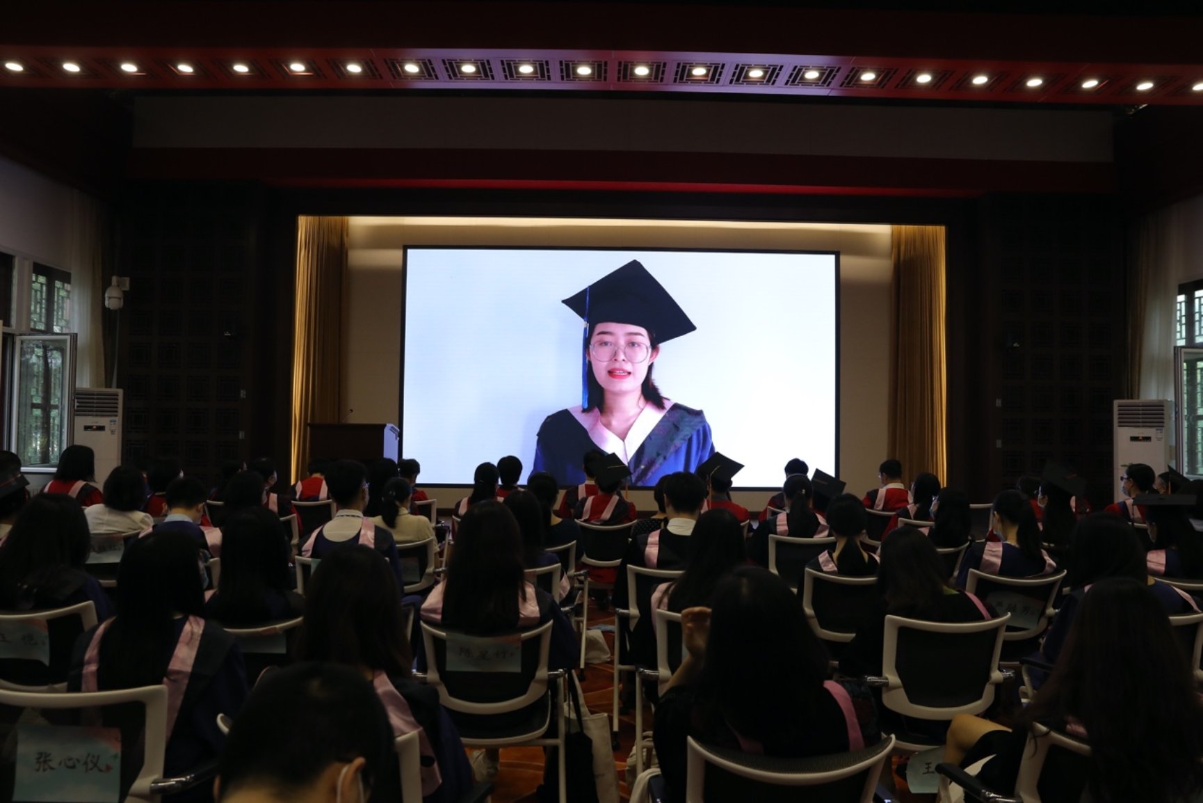 典礼最后,宁琦为现场的毕业生们拨穗,线上观礼的毕业生邀请亲友为自己拨穗。
