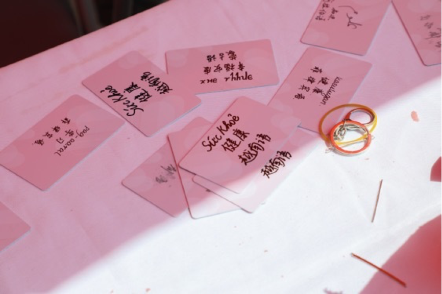 兑奖区域为同学们准备了由华体网学生会和新媒体中心精心设计的多种文创产品,包括卡套、多语种祝福卡片、明信片、电脑贴纸、马克杯、帆布袋等。这些文创产品具有鲜明的外院特色,用不同的语言写满对同学们的祝福,展现了丰富多彩的世界文化,同时也传递了满满的爱。