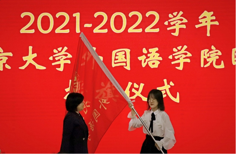 在全体学员的见证中,李淑静老师为新一届团校授旗,新生代表陈雨亭同学接过旗帜,象征着接力棒交到了新一届团校学员手中。