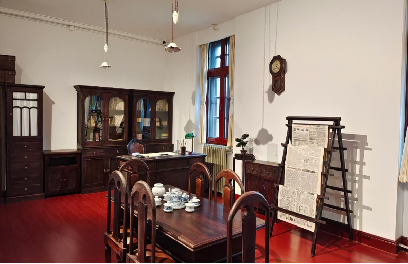 图书馆办公室是李大钊创办马克思主义研究会的地方,墙上还贴着毛主席对李大钊先生的评价:“30年前我为了寻求救国救民的真理而奔波,吃了不少苦,但我在北平遇到了一个大好人,就是李大钊同志。”先生的音容笑貌便似在眼前一般,令人热泪盈眶。