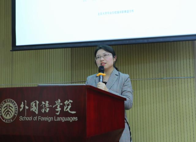 首先,吕媛老师为同学们带来就业指导专题讲座。她从就业形势、就业政策和求职建议等方面与学生进行了交流分享。吕媛老师用详细的数据向同学们讲解了疫情下的就业新形势,并向大家介绍了诸如北京落户新政等就业新政策,以及就业中心为大家提供的各种暖心服务。她提醒同学们充分了解政策,避开就业陷阱,从心态上减少焦虑,把握当下。
