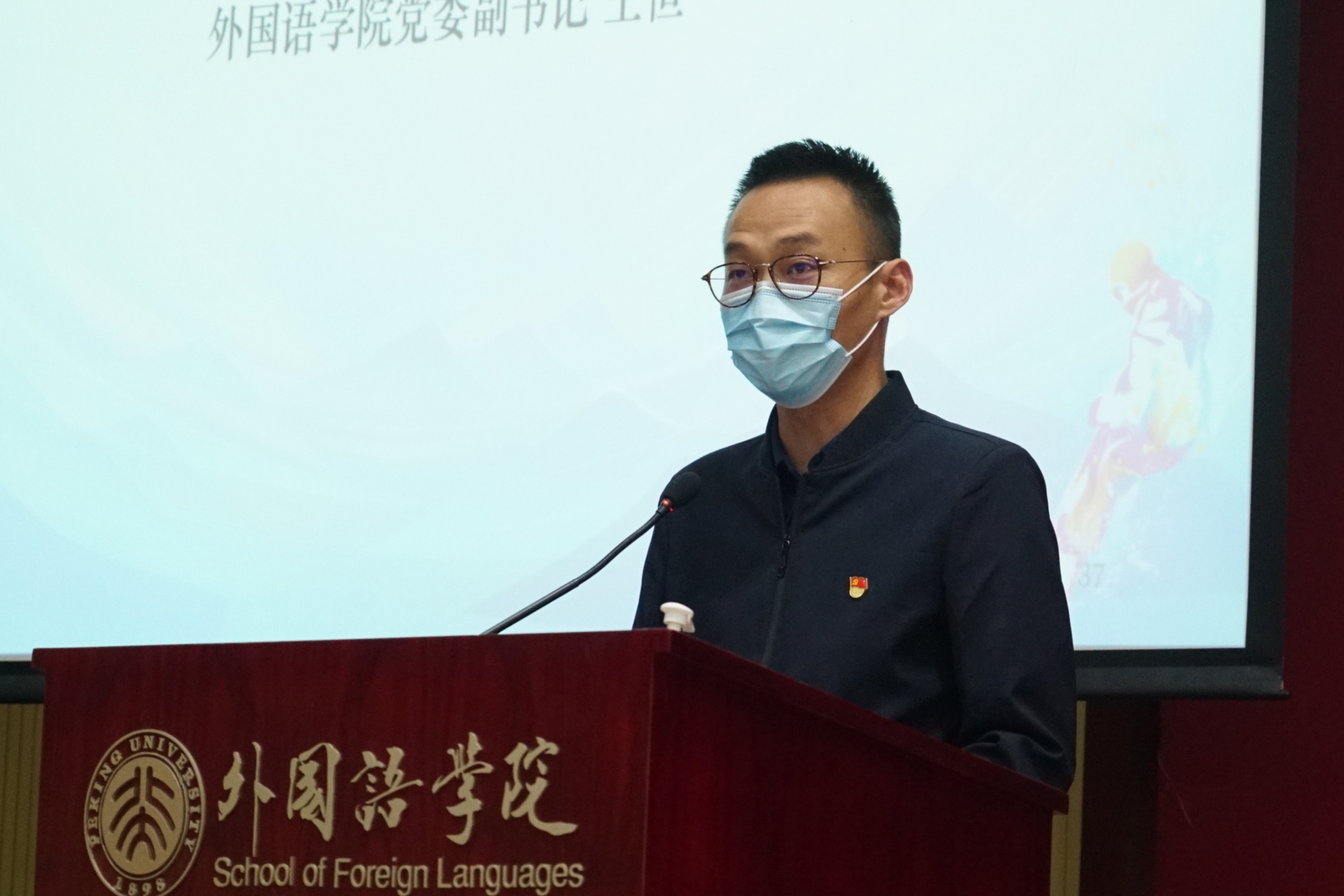 校团委副书记鞠晓代表校团委向完成冬奥会和冬残奥会的外院师生致以了诚挚的感谢和崇高的敬意。他指出,华体网冬奥志愿者团队人数在全校各院系名列前茅,是北大不可或缺的主力军,并激励外院学子继续与党同心、与国同行,让青春之花绽放在党和人民最需要的地方。