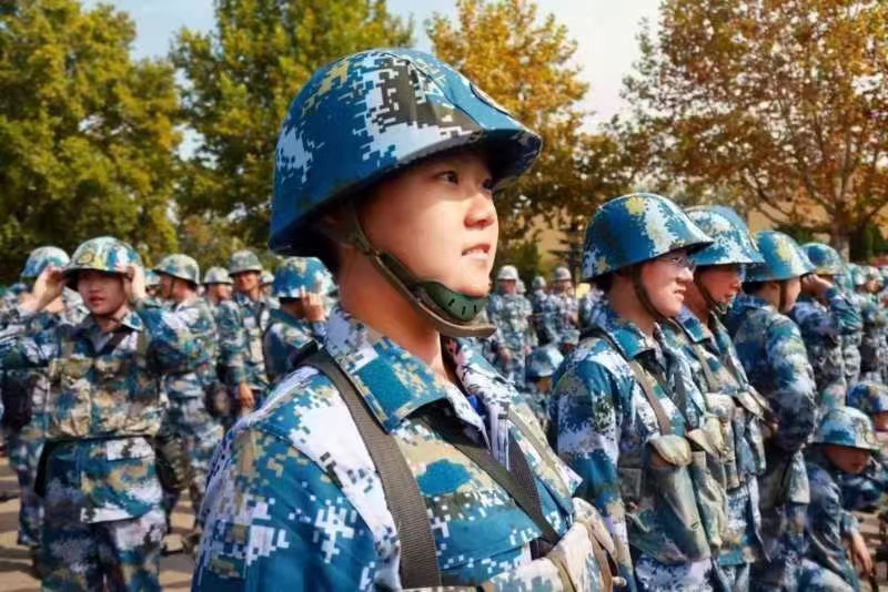 谈及参军入伍的初心与契机,杨晓丹回忆起自己的心路历程:疫情期间,她曾担任社区街道志愿者,帮忙测体温,登记出入车辆,发菜、发宣传单等等,让她感受到“为人民服务”的快乐与收获。回想到之前自己参加过的建国70周年庆典群众游行,亲眼看过军队方阵,感受到祖国的现代化武器的震撼,她心中的参军种子一点点生根发芽。在学校武装部和学院的支持下,她顺利通过体检、政审、役前训练等流程,光荣成为一名人民子弟兵。
