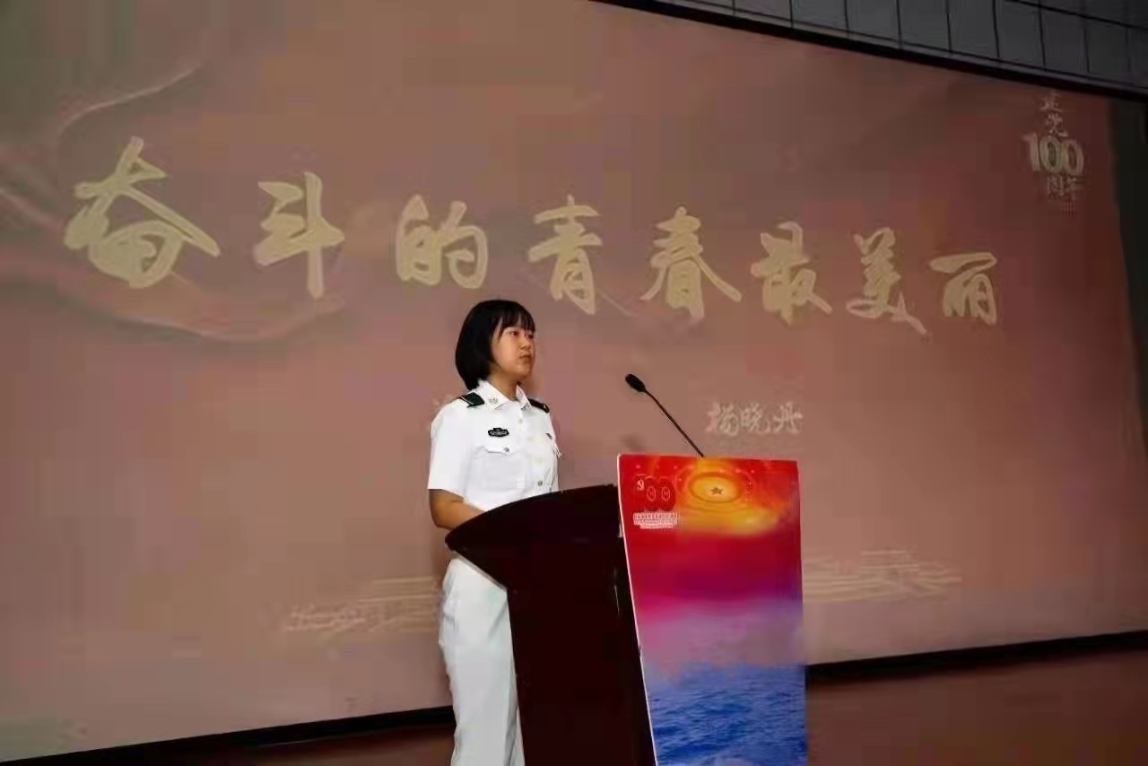 北大人外院人的身份,也增添了军营生活的色彩。尽管初入军队时,杨晓丹也因担心自己不够优秀配不上北大身份而紧张担心过,但随着参加的活动越来越多,北大变成了她的责任,她和北大相辅相成,相互成就。杨晓丹曾作为军营里的北大学子站上讲台授课,讲述自己的经历,展现北大人的风采和能力,用真心换来了真心,也获得了领导和战友的认可。她还积极为考学的战友们讲题,利用专业所长教战友们简单的西班牙语,增进了彼此的情谊。“世界在我脚下,祖国在我心中”,杨晓丹在军队也秉持着外院人的信念。作为北大青年、外院学子,她从不拘泥于一方天地,敢闯敢拼,用于突破自己,时刻严格要求自身。