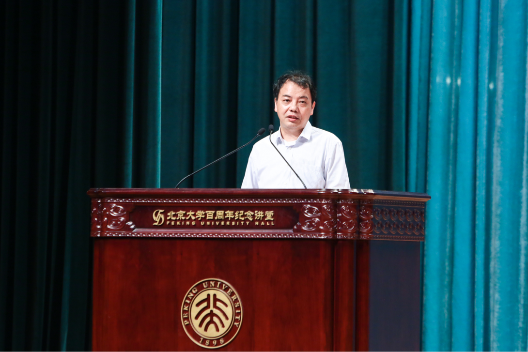 在热烈的掌声中,院长陈明为新生送上开学寄语。他代表学院全体师生员工欢迎新生们进入北大外院、成为燕园“常为新的”一份子。开学之际,陈明老师与新生分享了三句话。“志当存高远,中流自在心”。他鼓励同学们进行个人修炼、保持宽阔胸襟、拥有全球眼光,秉承北大红色传统,交上一份无愧于时代的答卷。“挖深洞,广积粮”。他教导同学们,外语不是工具而是基础,外语学习的目的不局限于外语的使用,更是聚焦于国际化高端人才内在能力和素质的培养。“读书不肯为人忙”。他强调,读书是为了探求文化知识,追求独立之思考、自由之意志,孕育自己的主体与主见,实现有意义的别样人生。读万卷书,行万里路,把论文写在祖国大地上,把青春的汗水撒播在绿水青山间。