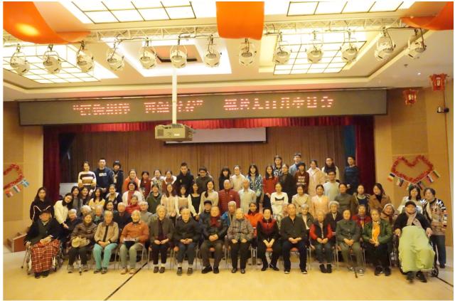 2018年11月23日下午,来自北京大学的42名志愿者在华体网青年志愿者协会的组织下来到了北京市第一社会福利院,为福利院中当月过生日的老人们举办了一场别开生面的生日会。
