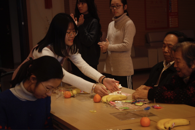 两个小时的活动很快进行到尾声。志愿者们纷纷和老人们合影留念,在共同回忆相处时光中依依惜别,并与老人们相约明年再见。