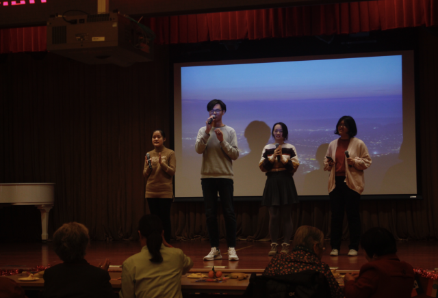 志愿者们为老人们表演节目