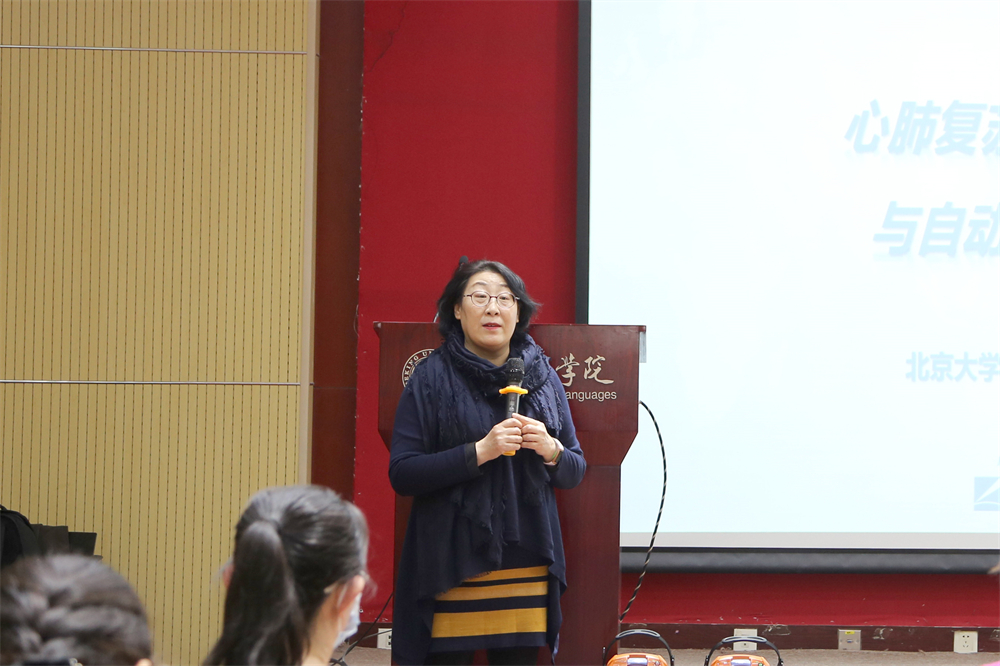培训开始前,张冬梅副院长介绍了此次培训的意义。在公共场所配备必要的急救设备,是国家建立健全突发事件卫生应急体系的需要,正在成为检验城市文明水平和基础设施是否完备的新标尺。学院一向高度重视安全问题,本学期购置了自动体外除颤仪(以下简称AED),放置于外院新楼一层大厅。心肺复苏术、AED操作方法都是普通人通过培训可以掌握的,开展急救培训,提高相关人员对急救术的掌握率,是争取黄金抢救时间的可行之法。本次特别邀请专业团队带来心肺复苏、AED使用的技能培训,希望大家高度重视、认真学习,增强公众急救意识,掌握急救技能,在紧急关头为学院师生提供切实的帮助。