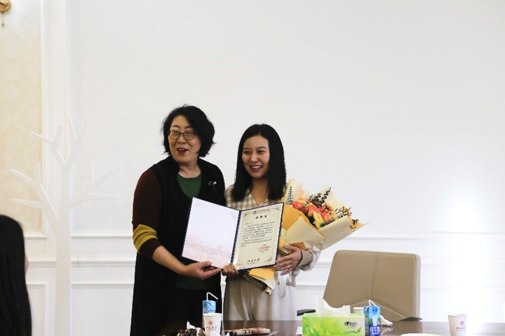 张冬梅老师首先肯定了两位老师的辛勤工作。张老师提到,两位老师在外院的工作中一直勤勤恳恳,任劳任怨,不计个人得失,从自己的岗位职责出发,在学院制度建立、工作流程优化、系所服务等方面做出了突出的贡献。张老师鼓励大家向两位老师学习这种职业精神,立足自身,继续为外院的发展添砖加瓦。之后,张老师代表学院向两位老师送上了鲜花及感谢信,感谢她们多年来对外院的付出,并衷心祝愿她们收获更加美好的未来。