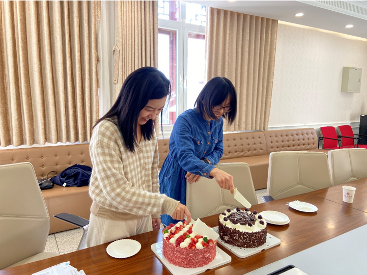 两位老师也表达了对于即将离开外院的不舍心情,对于在外院的工作经历,她们表示自己学到了很多工作技能,积累了宝贵的工作经验并得到了快速成长。外院是一个温馨有爱的大家庭,在外院工作的幸福感和获得感也十分高,经过长时间的相处,早已形成了家人之间的情感。对于两位老师的离开,各位老师也纷纷表达了不舍之情并送上了诚挚的祝福和美味的蛋糕,希望她们未来不论在哪里,依旧可以璀璨闪耀,也希望两位老师有机会能够常回“家”看看。