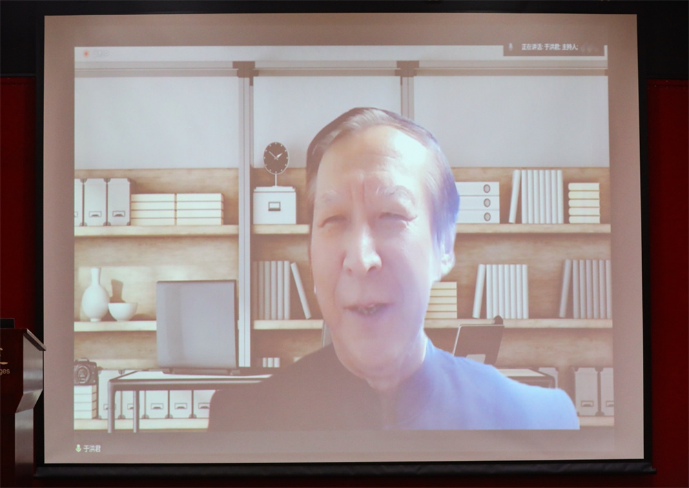 中共中央对外联络部原副部长于洪君大使以线上形式为会议作主旨发言,系统分析了当前我国面临的国际政治经济形势。于大使列举了近年世界主要国家和我国的宏观经济数据,从我国的经济地位、发展趋势、疫情影响三方面探讨当前形势,并提出了相应的应对措施。于大使强调,“百年大变局”下研究任何问题都离不开对世界格局的总体观察和思考。