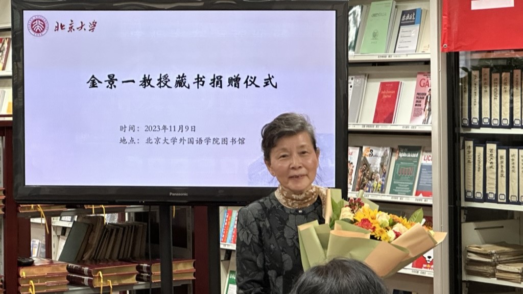 朝(韩)语系金景一教授毕生忠诚于国家教育事业,为中国朝鲜(韩国)学教育事业做出了重要贡献,对工作认真负责,对学生诚挚关怀,深受师生的尊敬与爱戴。金景一教授一生致力于朝鲜(韩国)学研究事业,严谨治学,求真求实,积累深厚、成果丰硕,涉猎领域涵盖近现代朝鲜半岛历史与文化、中国与朝鲜半岛关系史、朝鲜半岛问题等。2020年11月,金景一教授溘然长逝,如今夫人虞少华女士决定将金景一教授所藏千余册图书尽数捐献给华体网图书分馆。
