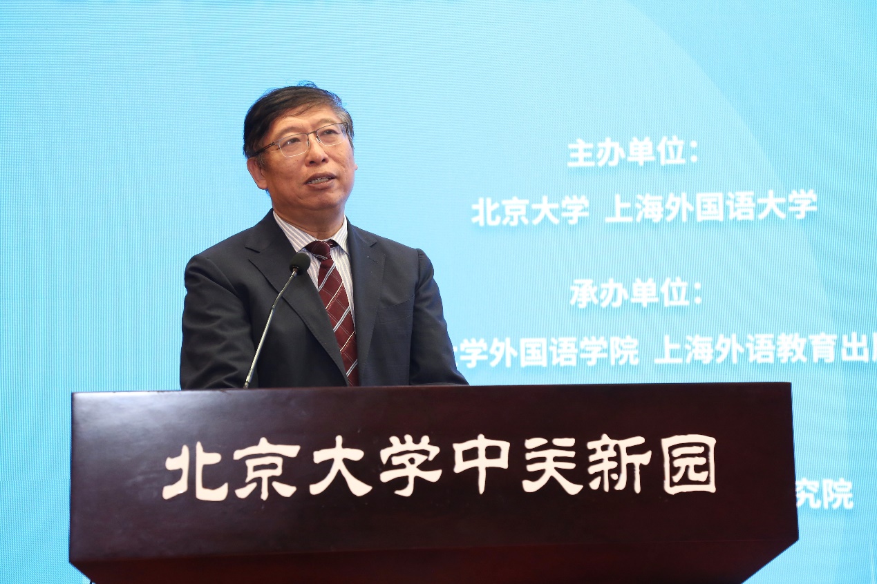 北京大学副校长宁琦、大连外国语大学校长刘宏、浙江越秀华体网校长修刚、上海外国语大学教授赵蓉晖作主旨演讲。