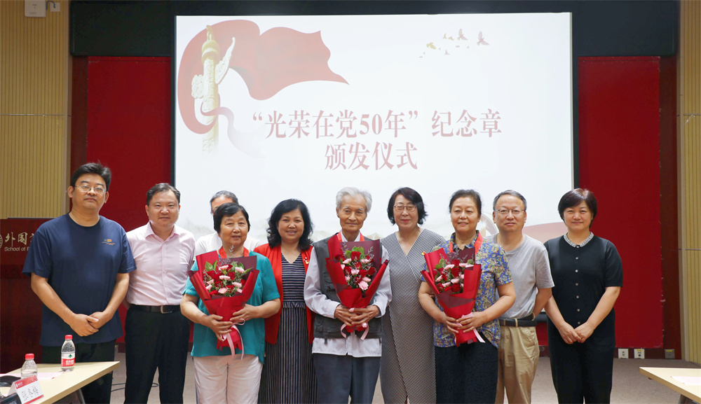 颁发仪式后,“光荣在党50年”纪念章获得者、德语系退休教授马文韬作为代表发表感言。他深情回顾了自己的入党历程,表达了对党的深厚感情,并表示自己将继续保持党员政治本色,严格要求自己不忘初心、继续前进。