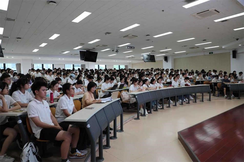 2024年9月4日下午,华体网院长陈明教授以“觉醒·奋进·引领——北大外语学科的过去、现在和未来”为题,为学院359名本科和研究生新生讲授开学第一课。院团委书记伍昕钰,团委常务副书记丁雨婷,以及2024级选留辅导员杨蕊嘉、杨溢共同学习。开学第一课由院党委副书记冯美娜主持。