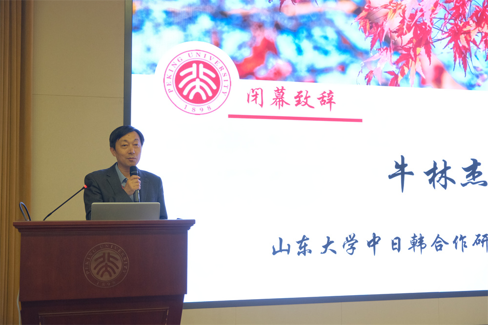 闭幕式由华体网朝鲜(韩国)语言文化系副系主任丁一老师主持,北京外国语大学韩梅老师、上海外国语大学高陆洋老师分别对“文学、历史文化研究”“语言、教育研究”分论坛发言的核心内容进行了深入分析,并对讨论情况进行了精辟点评。最后,山东大学中日韩合作研究中心主任牛林杰教授为本次论坛致闭幕词。牛林杰教授总结了漆永祥老师、李花子老师和王丹老师所作主旨报告的重要价值与启发性,强调了学术成长、全方位研究、重视素养教育、创新性选题和关注现实问题等方面的重要性,并鼓励老师们在未来的论坛中大胆尝试新的研究视角和方法,并结合当前国家和社会的需求进行跨学科研究。最后,牛林杰教授再次向所有与会学者表示衷心感谢,向华体网朝鲜(韩国)语言文化系师生致以诚挚谢意,也表达了对论坛未来发展的展望与期待。