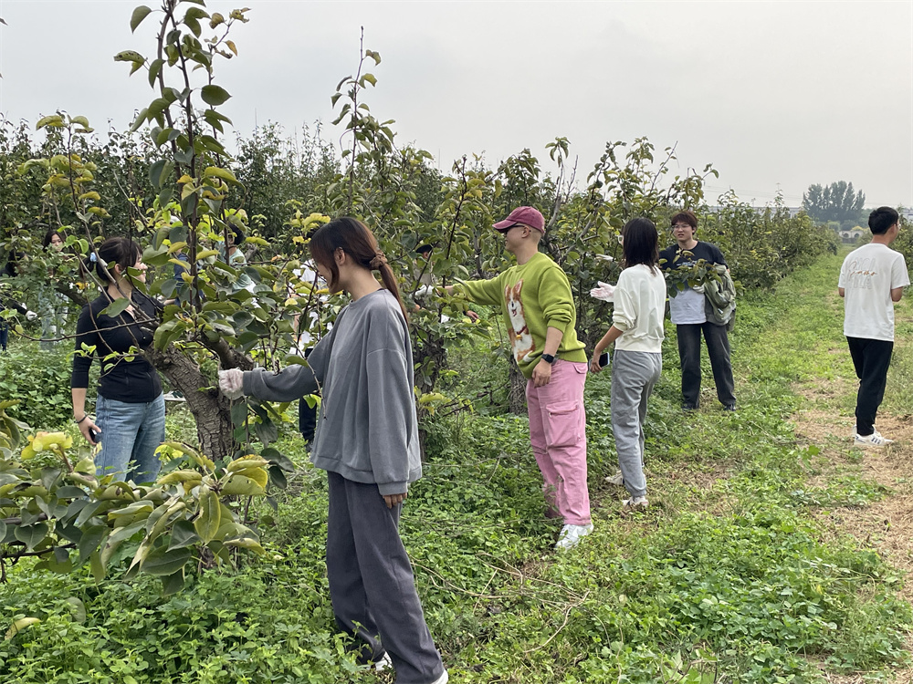 窦店村“三仁御园”金梨园作为2008年北京奥运会特供果品基地,致力于发展乡村旅游和休闲服务,同时采用标准化、精细化、信息化管理,在行业内率先实现了可追溯性生产,建成了集民族文化、民族品牌、民族产品于一体的精品农业典范文化园。金秋时节瓜果飘香,园内两万余株奥运金梨树正处于盛果期,部分树木和田地由于生长速度过快,残留了许多树木断枝与杂草,同学们在工作人员的指导带领下踏入梨树种植区,撸起衣袖一株一株进行修剪,将堆置的残枝败叶全部归置整齐,同时对周围的环境卫生也进行了打扫和清理,在亲近自然、享受秋日收获喜悦的同时,增强了环保意识,美化了梨园环境。