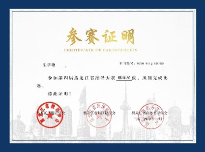 11月29日,由黑龙江省俄语学会、黑龙江省外国语学会和黑龙江省商务英语学会主办,福州译国译民集团有限公司和黑龙江大学共同承办的第四届黑龙江省翻译大赛公布获奖名单。俄语系朱华墩(24级博士生)同学获俄译汉组二等奖。