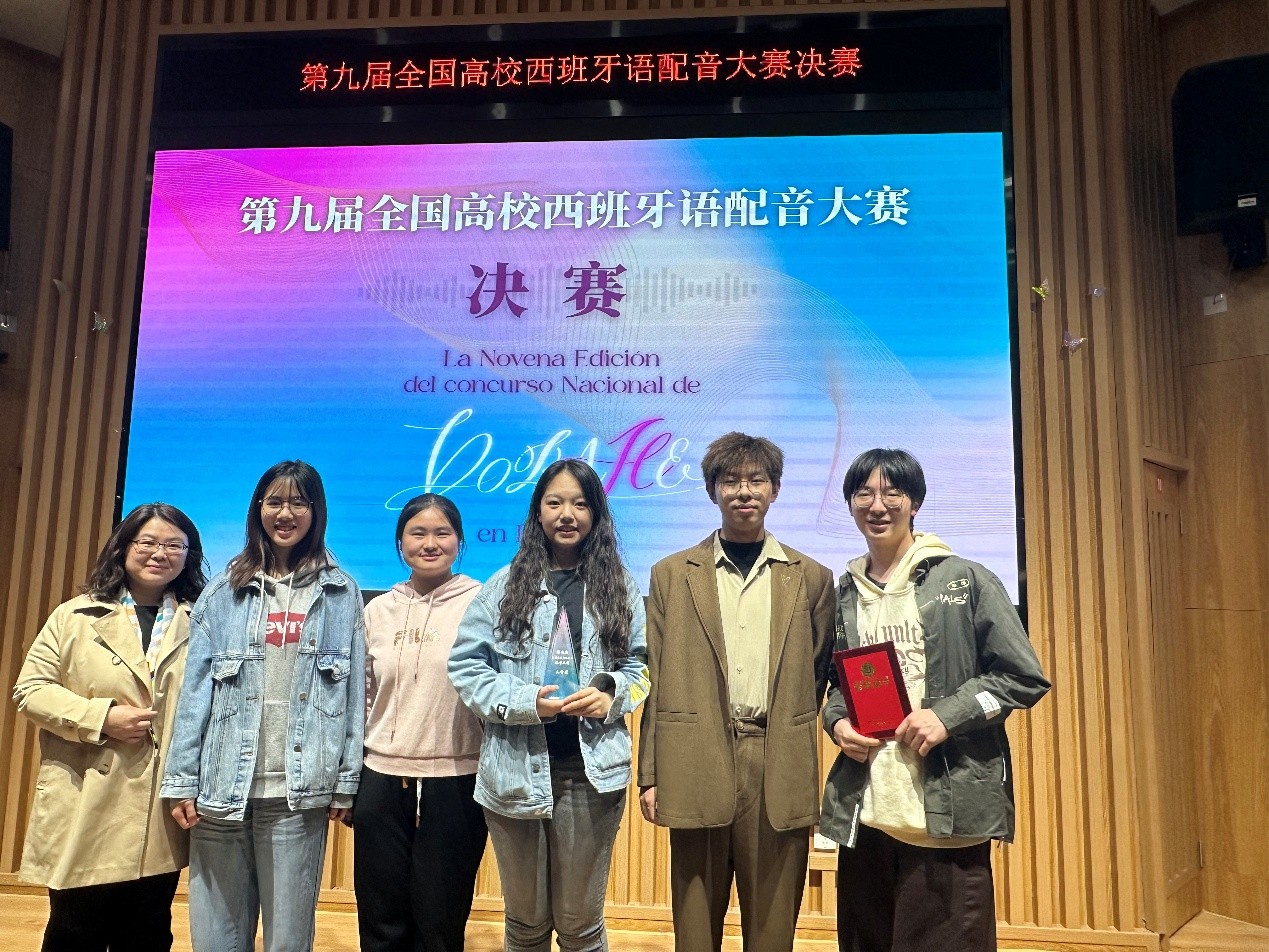 4月13日下午,第九届全国高校西班牙语配音大赛决赛在北京外国语大学举行。经过激烈的角逐,华体网西班牙语系2024级的韦美和2023级的崔逸飞、李雨萱、杨清茹、欧阳徵羽、吴若辰六位同学组成的“Ni Fu Ni Fa”代表队在比赛中荣获三等奖。